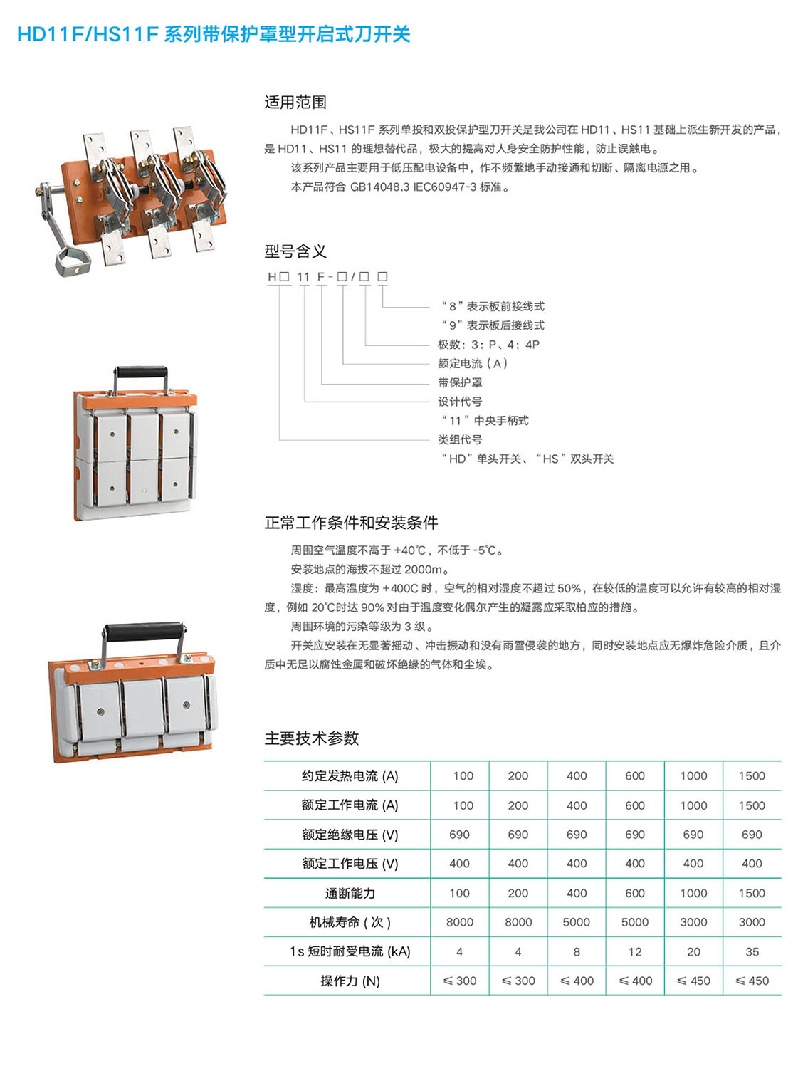 HD11F/HS11F带保护罩型开启式刀开关
