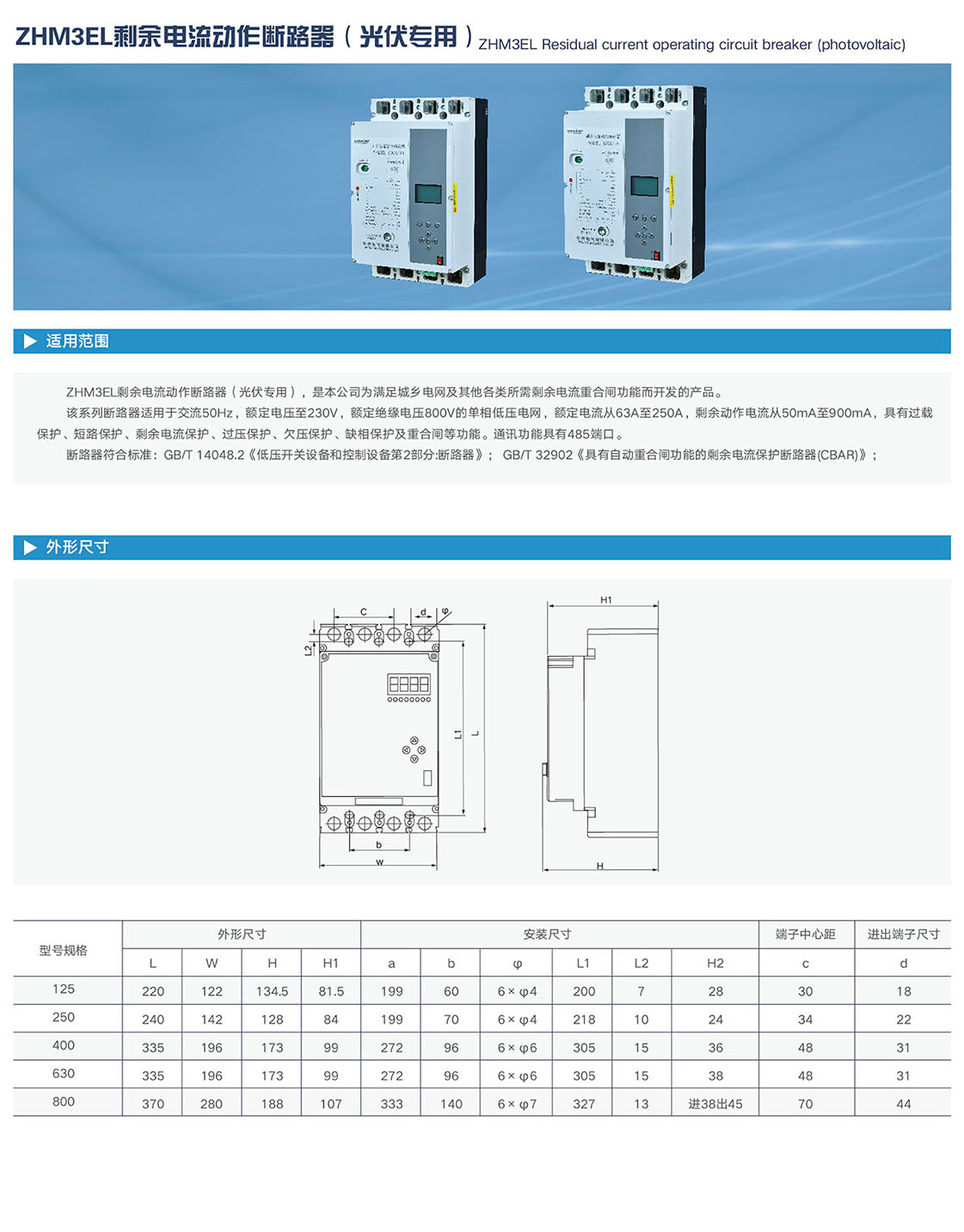 ZHM3EL剩余电流动作断路器(光伏专用)